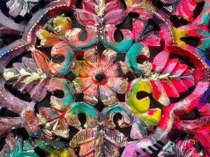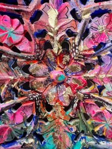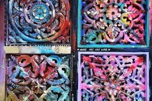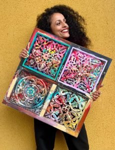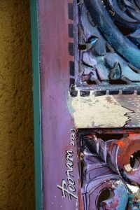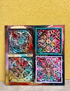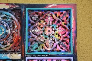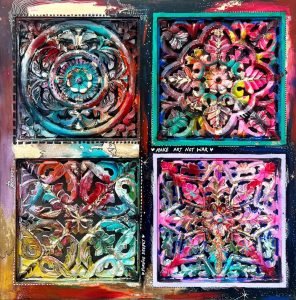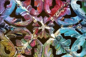 Acrylic, gold leaf and Posca on wood