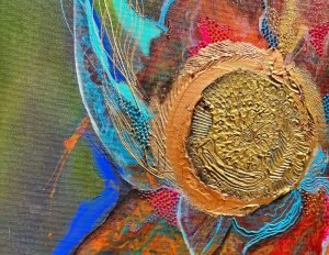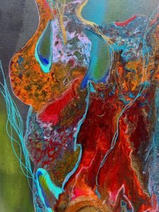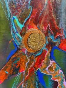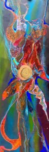The dance of a mystic is a painting depicting the complexities of deep and profound relationships, even when we cut chords with people who do not serve our path currently or in this lifetime, we are deeply connected to them in our intuition, energies and hearts! Long live unconditional LOVE!